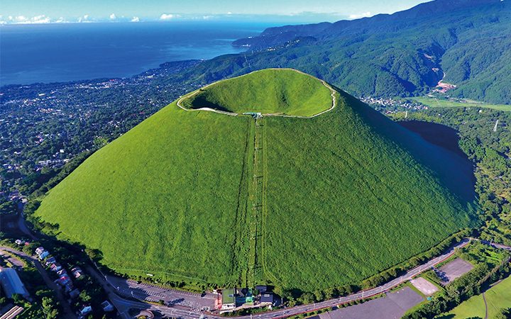 約4000 年前の噴火でできたとされる大室山は、すり鉢のような噴火口が特徴。山頂まではリフトで登ることができる。