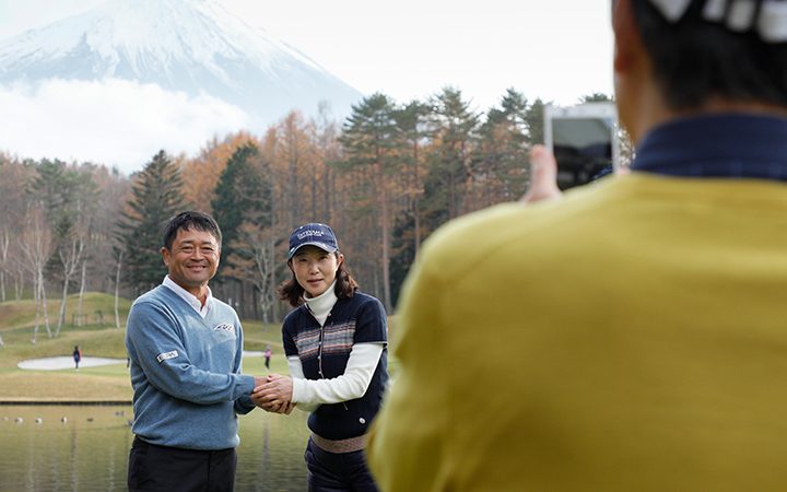 今回の舞台となった山梨県の鳴沢ゴルフ倶楽部。逆さ富士が有名な8 番をはじめ、富士山を視界いっぱいに望みながらのティショットはまた格別。ゴルフファンならば一度はプレーしてみたい憧れのコースだ。ランチには無農薬リーフのガレットサンドウィッチやオーガニックマッシュルームとプロシュートのグリルクロワッサンサンド、温かいとうもろこしのポタージュスープなどがOUT/IN それぞれの茶店で振る舞われた。