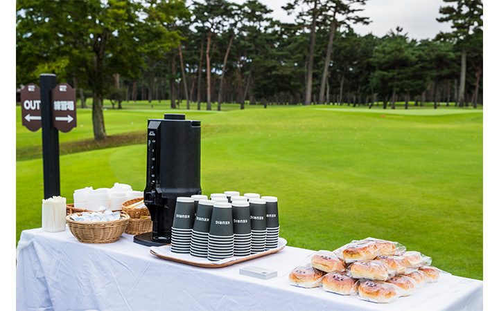 参加者は打数を予想してプレーする“ 宣言ホール” や自分のドライバーとオノフのドライバーを比較試打する“ ドラコンチャレンジ”、國際グループで扱う各ブランド名を冠した“ ワンオンチャレンジ” など、オリジナリティのあるホールアトラクションで、ベストスコアを狙うだけではないTOUCH Plus ならではのゴルフを楽しんだ。また、クラブハウス横に展示された各ブランドの最新モデル6 台を前に、コーヒーとあんぱんを提供して、欧米スタイルのカーカルチャーイベント“CARS & COFFEE”も開催、好評を博した。